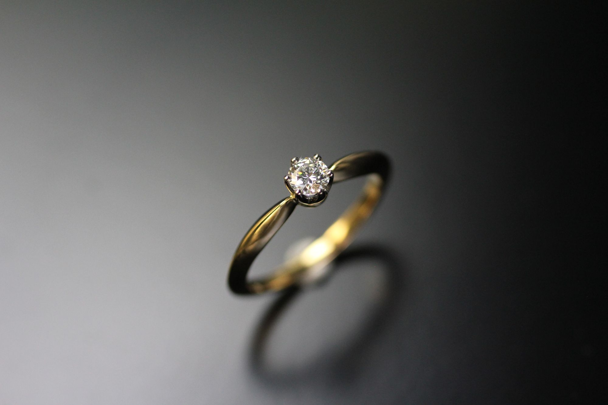 Engabement Ring, feine Tropfen-Schiene, Gelb-Weissgold 750, 1 Brillant 0.35 ct