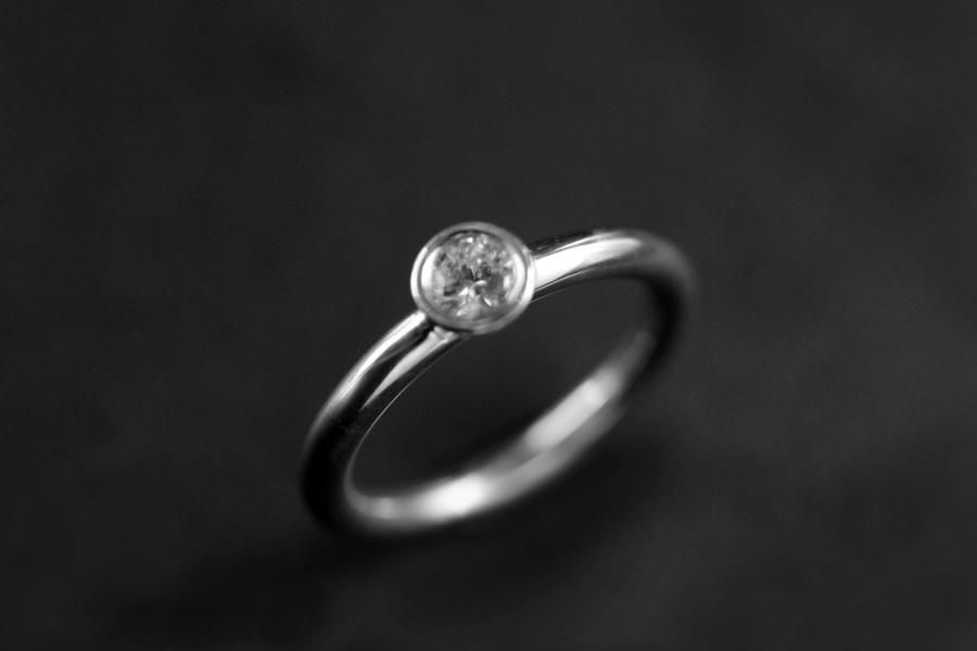 Dieser Verlobungsring ist leicht und schlicht gearbeitet. Das Weissgold überlässt dem Diamanten seinen glitzernden Auftritt. Die geschlossene Fassung schwebt auf der runden bequemen Ringschiene und erlaubt es den Ring auch als beisteck Solitaire zu verwenden. Dieser Ring bieten wir mit verschiedenen Steingrössen an: Das abgebildete Modell ist auf der Übersicht der zweite von Rechts und trägt einen 0,25 ct. Diamant im Brillantschliff. Fügen Sie die Ringe auf die Merkliste und wir werden ihnen eine Offerte zukommen lassen.