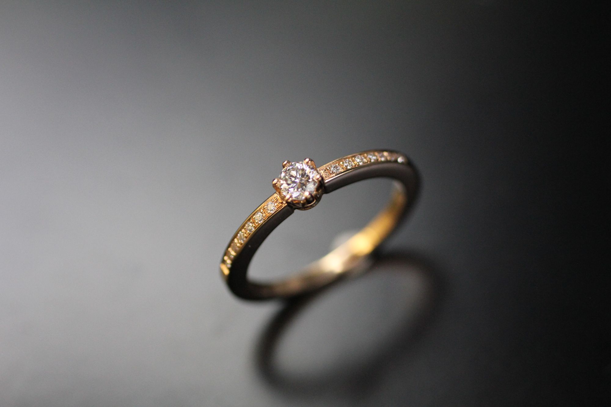 Verlobungsring Mittelstein und seitliche pavés, Total 15 Brillanten 0.27 ct, Rotgold 750