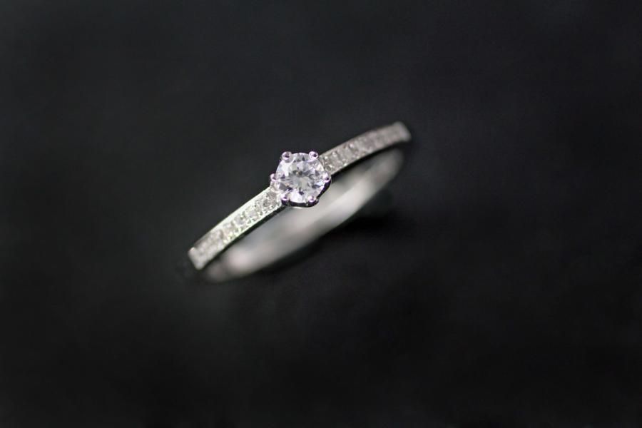 Dieser weissgoldene Verlobungsring ist verspielt, fein und dennoch extravagant. Seine gerade Ringschiene ist zusätzlich mit einem Diamantpavé verziert und hält die Kronenfassung mit dem Brillant sicher umschlossen. Dieses elegante Modell ist einer Prinzessin würdig. Wir bieten diesen Ring mit verschiedenen Steingrössen an: Das abgebildete Modell ist auf dem Gruppenbild ganz rechts und trägt einen 0,20ct. Diamant im Brillantschliff so wie 15 Brillanten mit 0,07ct. auf der Schiene. Fügen Sie die Ringe auf die Merkliste und wir werden ihnen eine Offerte zukommen lassen.
