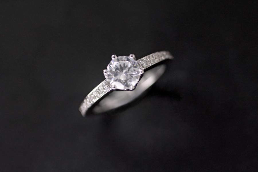 Dieser weissgoldene Verlobungsring ist verspielt und extravagant. Seine gerade Ringschiene ist zusätzlich mit einem Diamantpavé verziert und hält die Kronenfassung mit dem Brillant sicher umschlossen. Dieses elegante Modell ist einer Prinzessin würdig. Wir bieten diesen Ring mit verschiedenen Steingrössen an: Das abgebildete Modell ist auf dem Gruppenbild ganz links und trägt einen 1,0ct. Diamant im Brillantschliff so wie 15 Brillanten mit 0,25ct. auf der Schiene. Fügen Sie die Ringe auf die Merkliste und wir werden ihnen eine Offerte zukommen lassen.