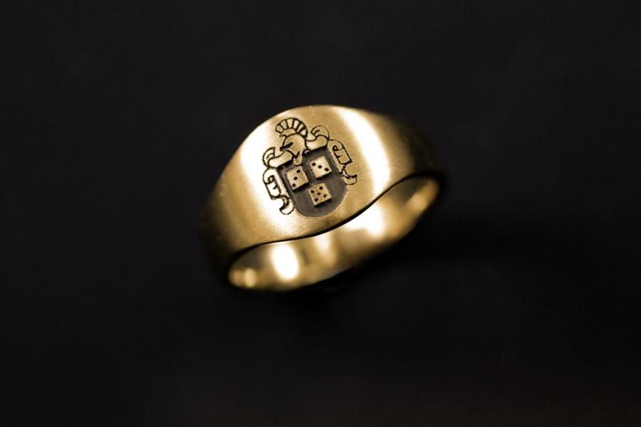 Dieser Wappenring in Gelbgold ist 11 mm breit und gehört damit zu den mittleren Grössen unserer Kollektion von Grundmodellen. Seine Form ist organisch verlaufend und bietet unzählige Möglichkeiten für eine Gravur. Sehr bequem zu tragen und somit auch im Alltag ein treuer Begleiter. Kommen sie vorbei und lassen sie sich zu den unzähligen Möglichkeiten beraten. Oder fügen sie die Ringe auf die Merkliste und erhalten eine Preisvorstellung.