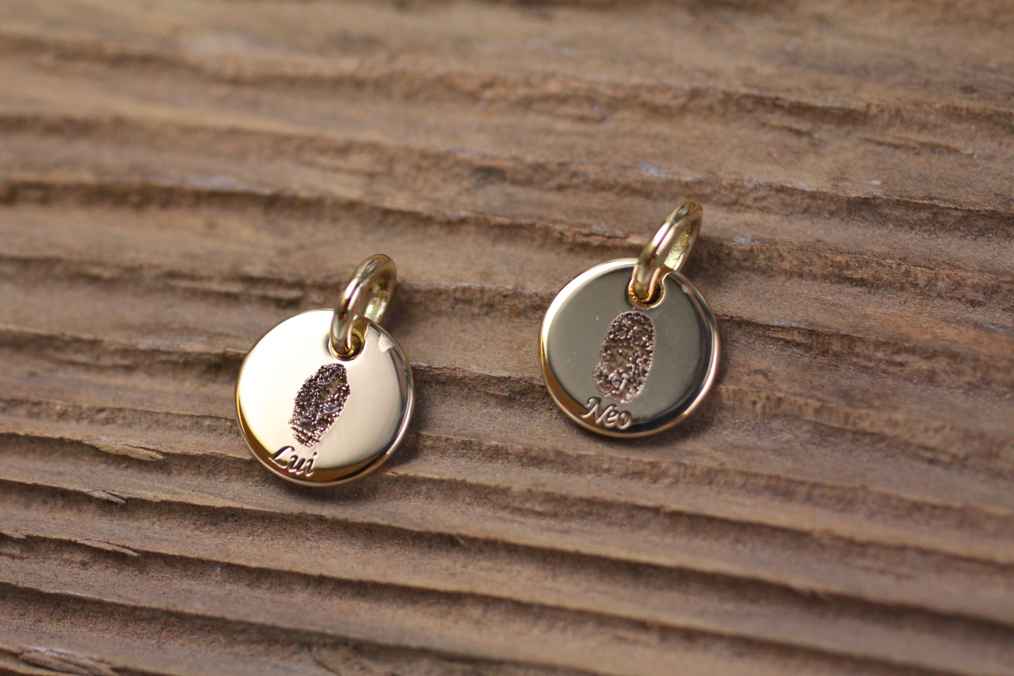 Familienschmuck, Anhänger in Gelbgold mit Fingerabdrücke. Kundenauftrag