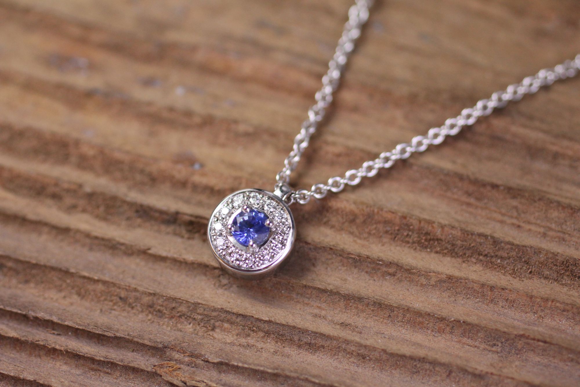 Ketteli und Anhänger mit Brillanten und hellem Saphir. Kundenauftrag