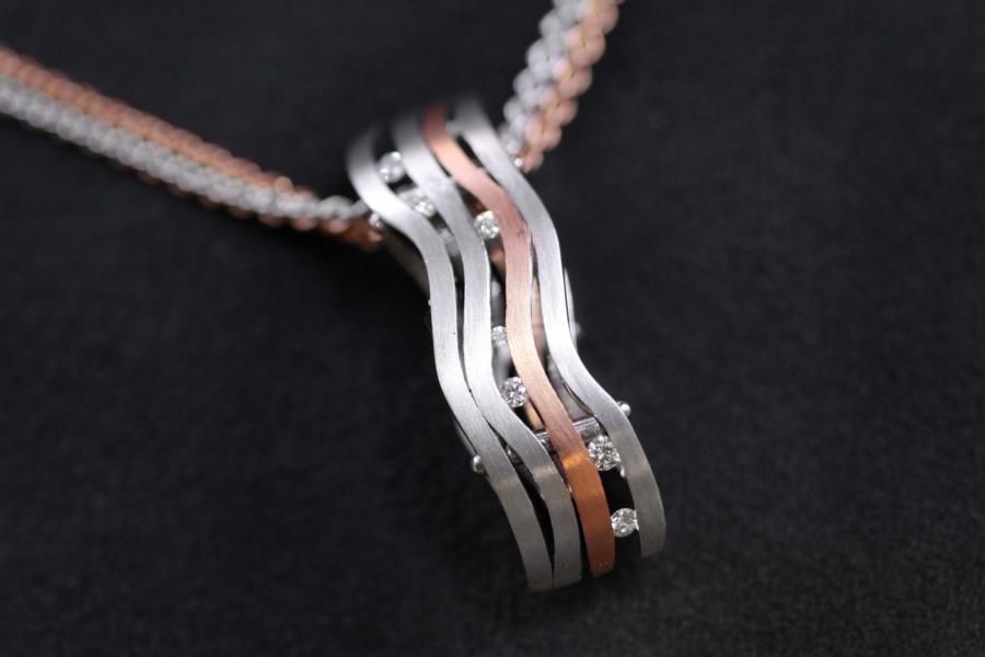 AXIS Anhänger "Rapunzel" 4 Teilig aus Rot/ Weissgold. Mit weissen und cognac farbigen Brillanten versenkt gefasst.