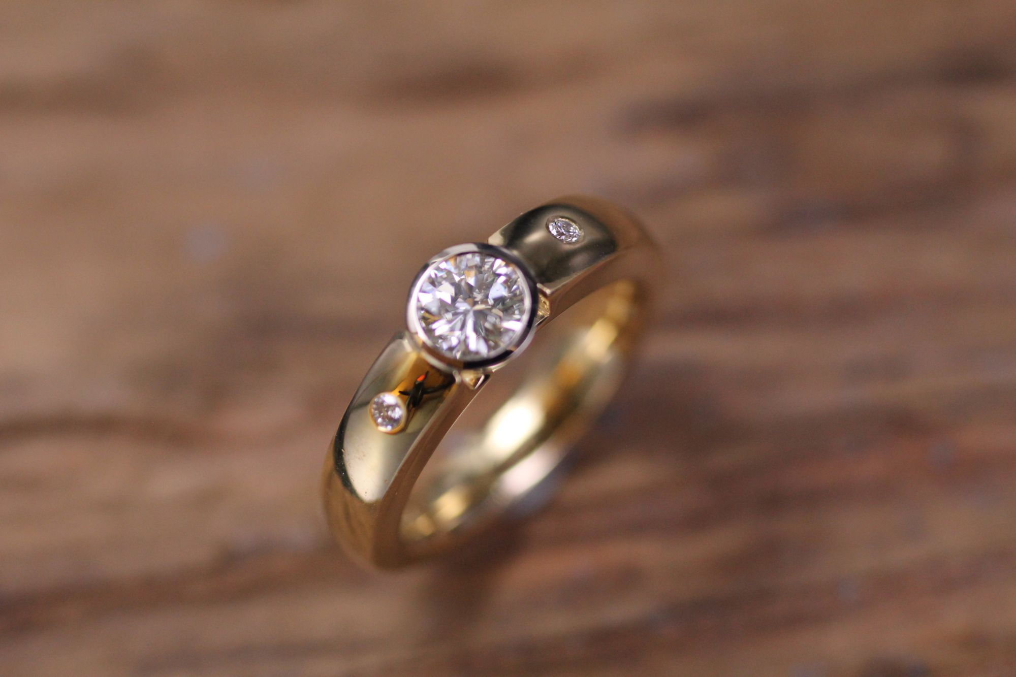Damenring Gelb/Weissgold mit 3 Brillanten geschlossen gefasst. Kundenauftrag