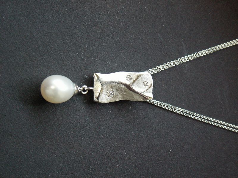 Kundenauftrag Collier Weissgold Brillanten, Süsswasser Z.-Perlen