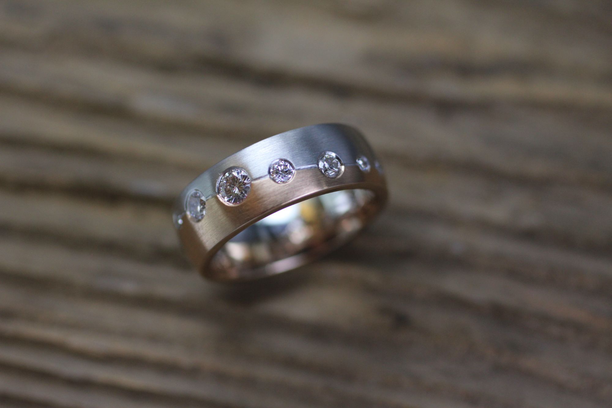 Damenring Gelb-Weissgold mit Brillant-Linie. Kundenauftrag