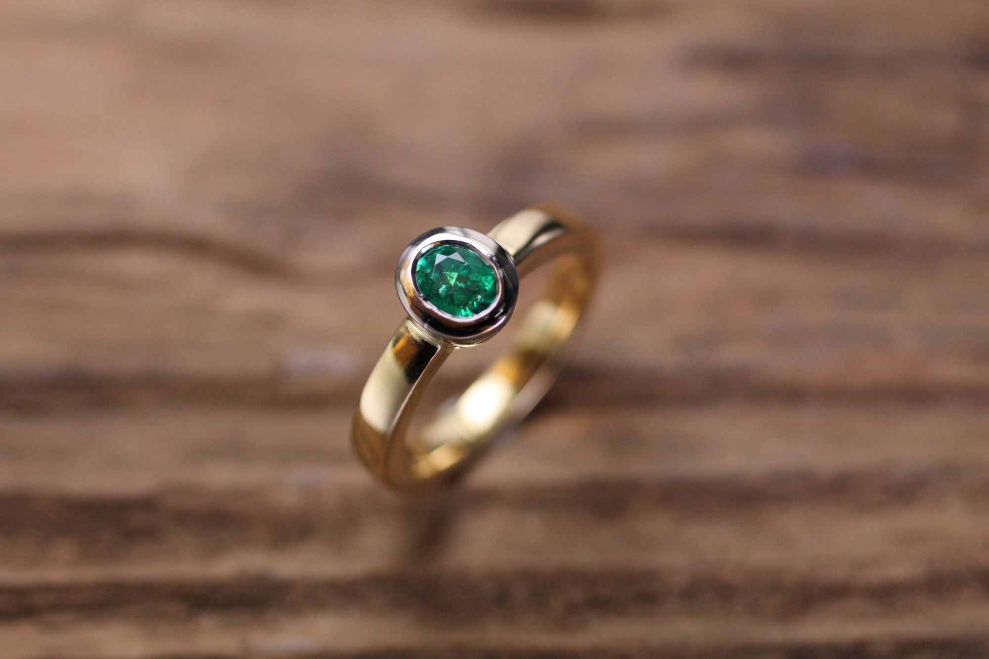 Damenring Gelb-Weissgold mit grünem Turmalin. Kundenauftrag