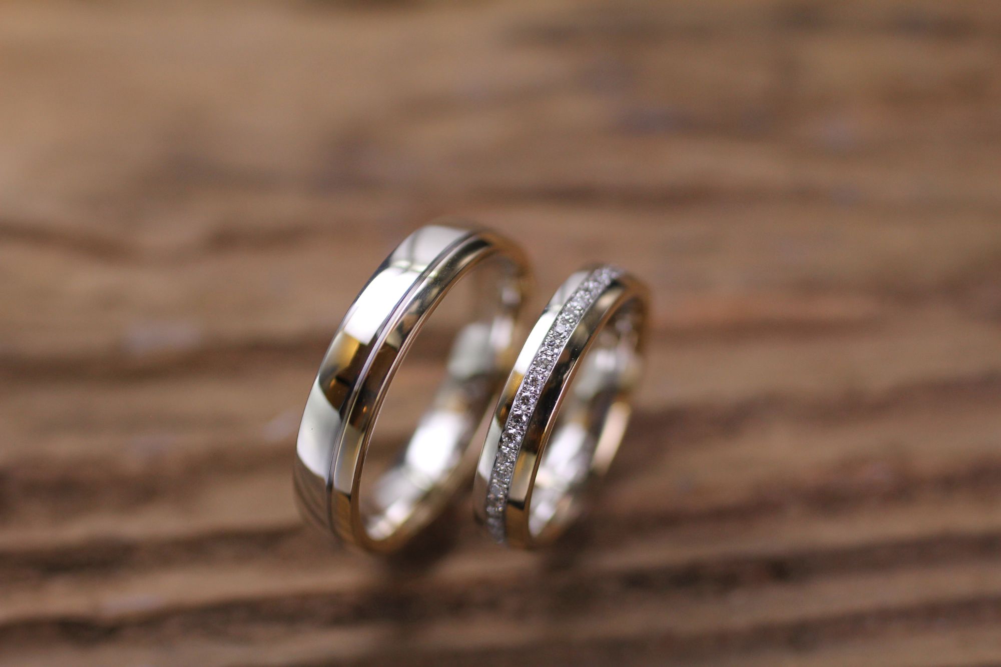 Feine Weissgold Eheringe mit Brillant Pavé rundherum. Kundenauftrag