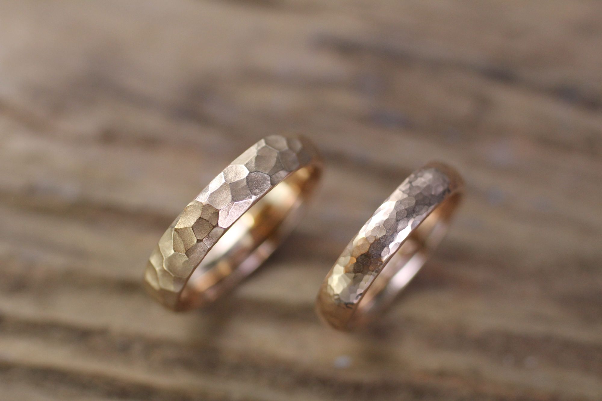 Hochzeitsringe Roségold, Bienenwaben und gehämmert. Kundenauftrag