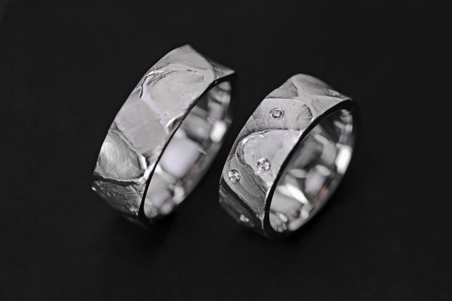 Die Eheringe Sanddüne sind aus Weissgold gearbeitet. Ihr Grundkörper ist massiv, von einer mittleren Breite und oben flach. Spannend ist die glatte Struktur welche sanft geschwungen den Ring umspannt und an eine Sanddüne erinnert. Im Damenring sind 9 Brillanten eingearbeitet die glitzern wie verborgene Schätze im Sand. Weitere Variationen dieser Trauringe sind nach Absprache möglich. Fügen Sie die Ringe auf die Merkliste und vergleichen Sie sie mit den anderen Schmuckstücken.
