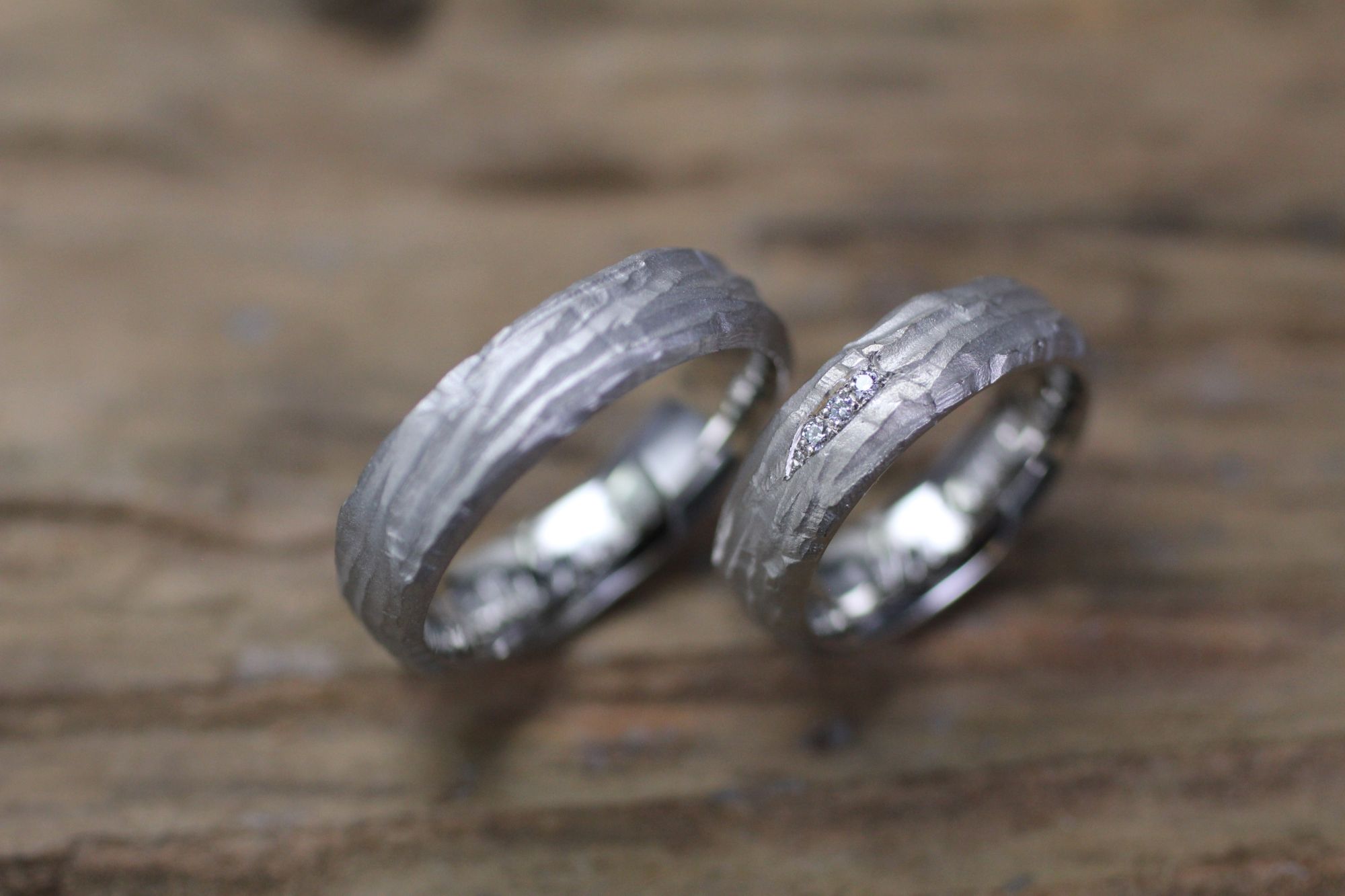 Eheringe Gletscher Struktur in Platin, Damen mit Brillanten.