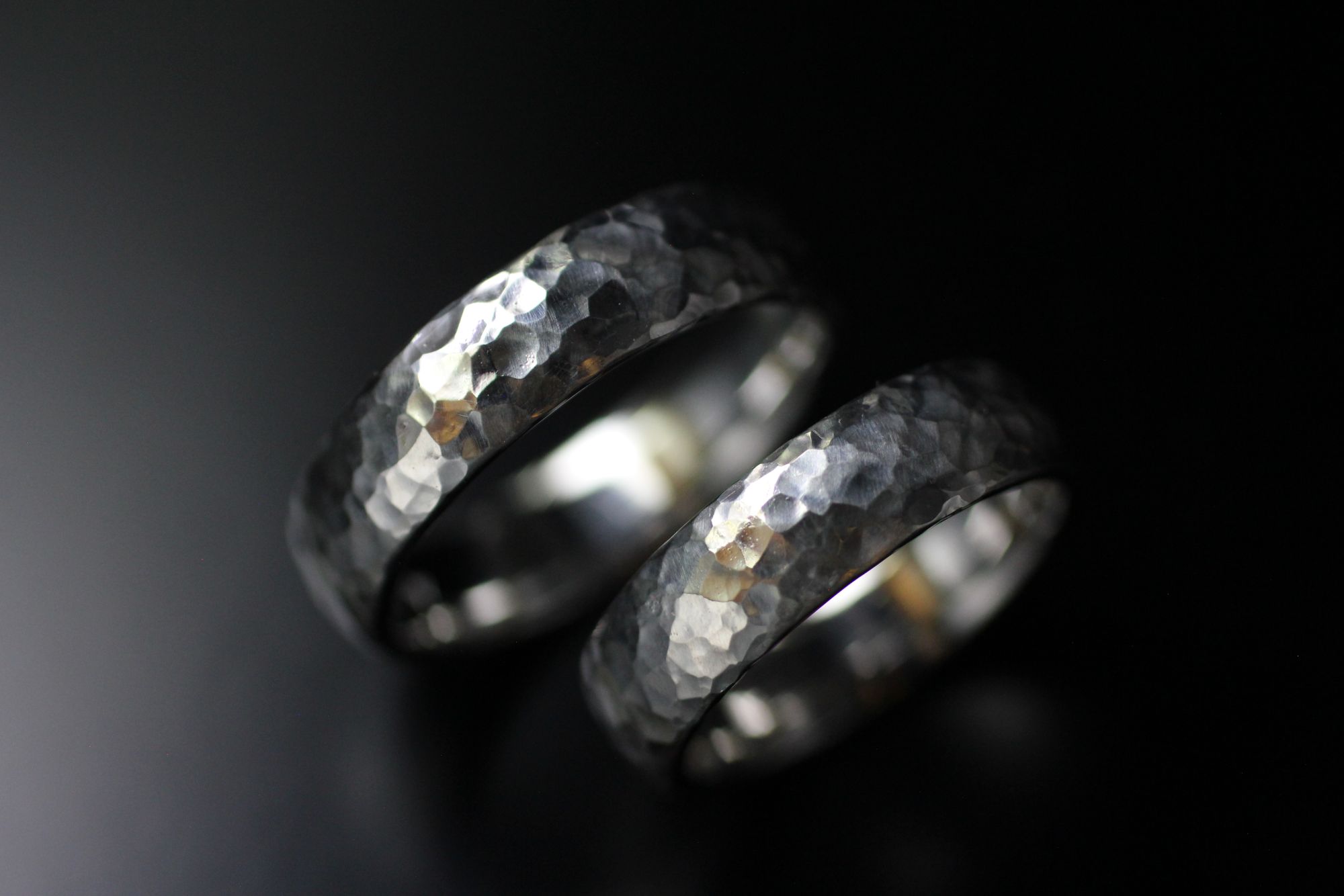 Ehering Kissenform, Weissgold, stark gehämmert