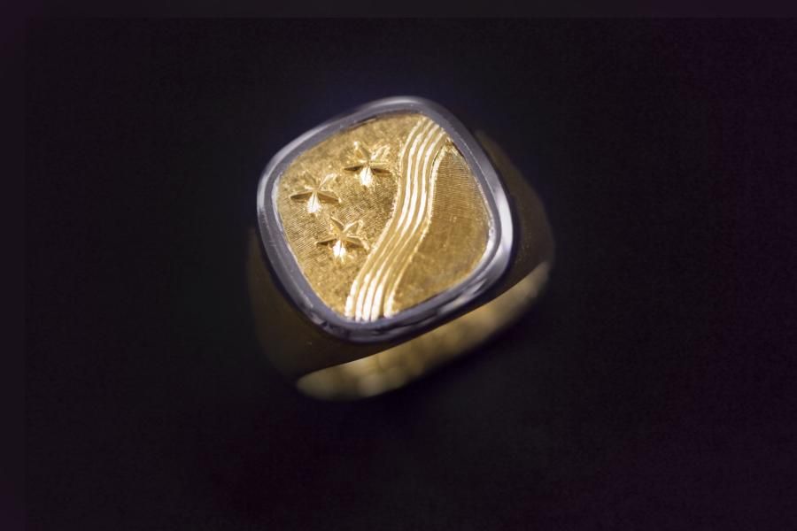 Herrenring mit graviertem Wappen Auftrag nach Kundenwunsch nach unserem Grundmodell.