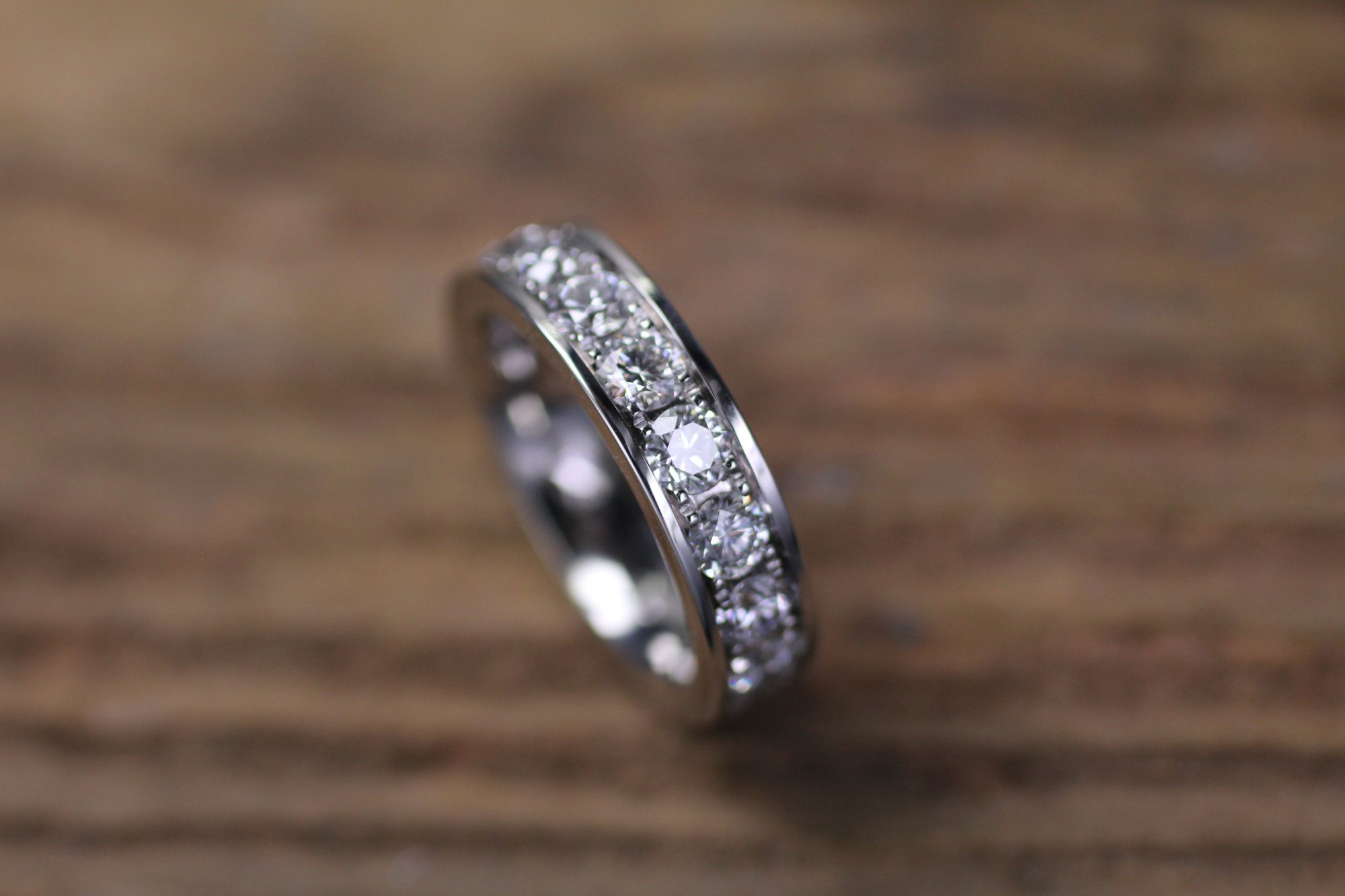 Weissgold Memoire-Ring mit grossen Brillanten, pavégefasst.
