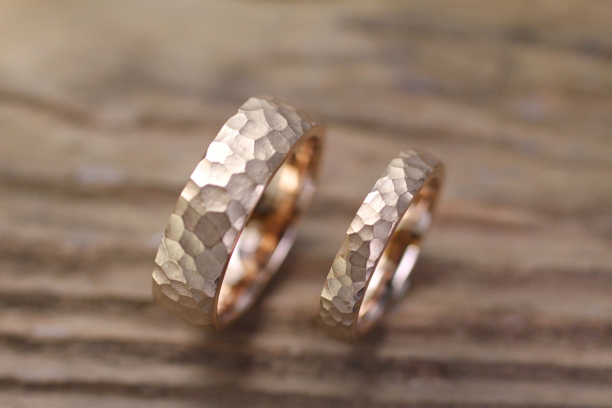 Eheringe verschiedene Breiten, Roségold, Bienenwaben.
