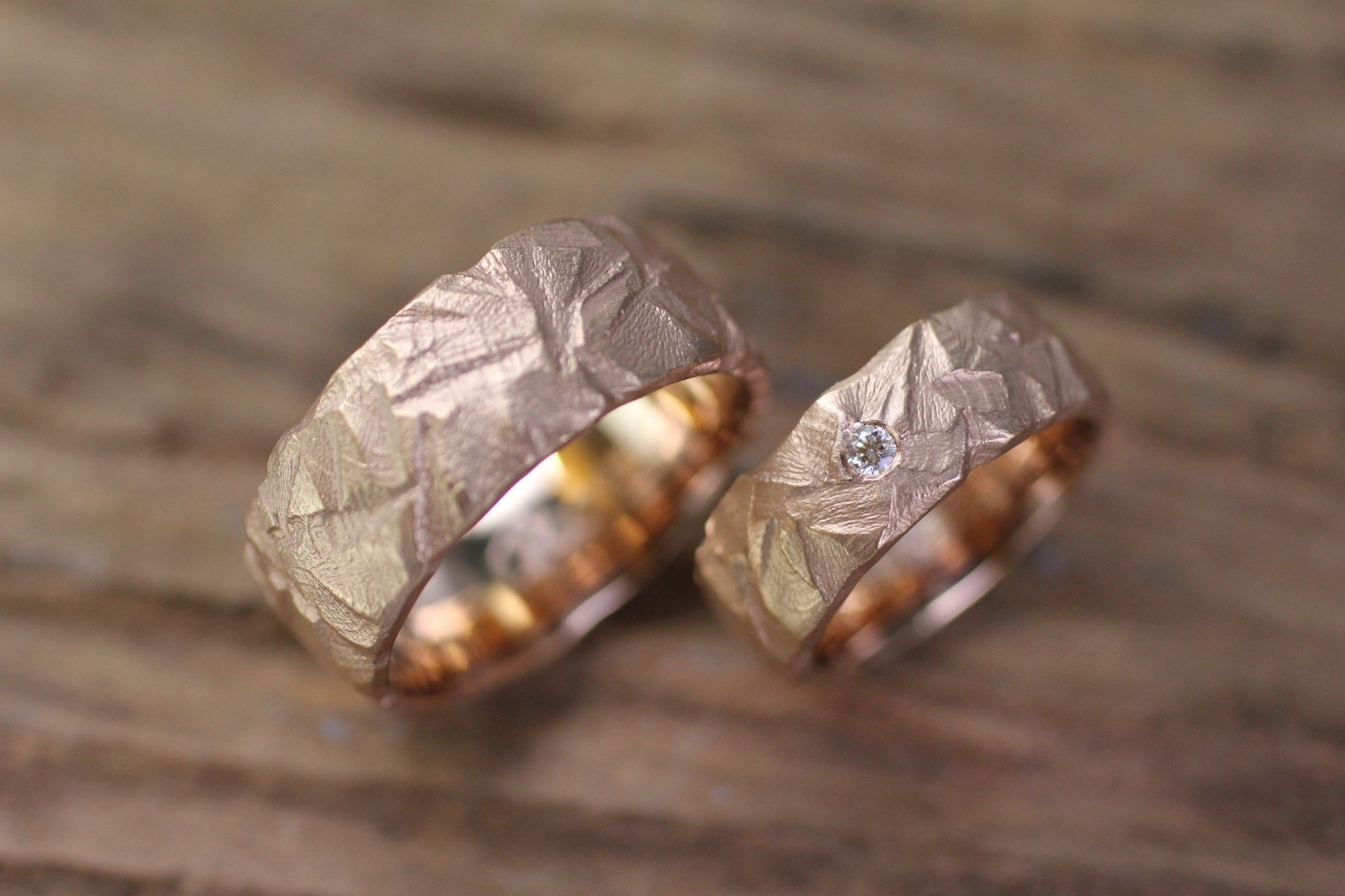 Ehreringe in Rotgold, Eispickel Muster, Damen mit Brillant.