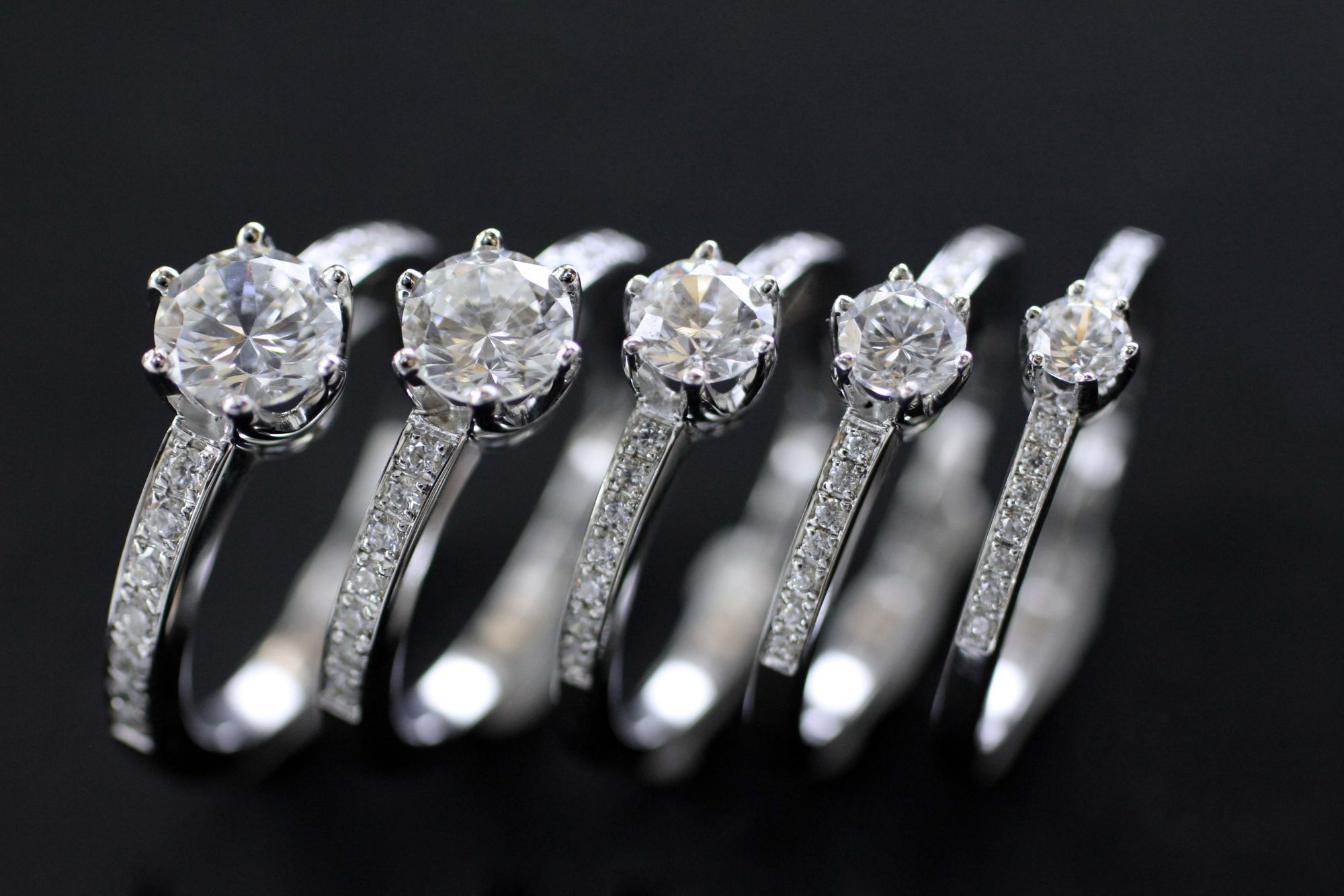 Klassischer Solitär mit Kronenfassung. Mit Diamant Pavé auf der geraden Schiene. Weitere Variationen dieses Solitär Ringes sind nach Absprache möglich.