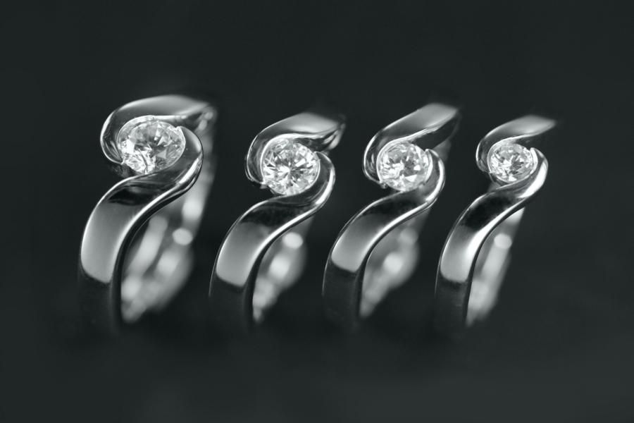 Schwungvolle Verlobungsringe mit massiver Schiene. Weitere Variationen dieser Solitär Ringe sind nach Absprache möglich.