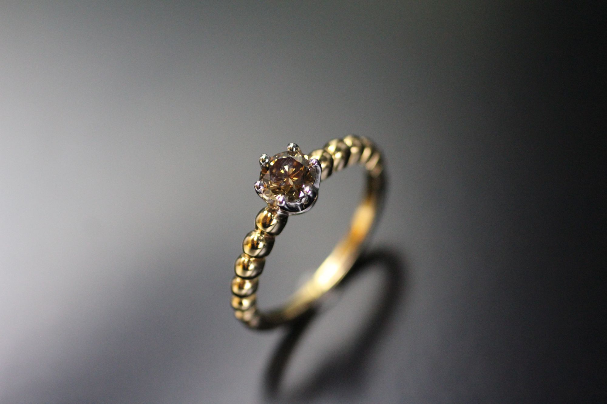 Verlobungsring mit Cognac Brillant, 0.57 ct, Gelb-Weissgold 750